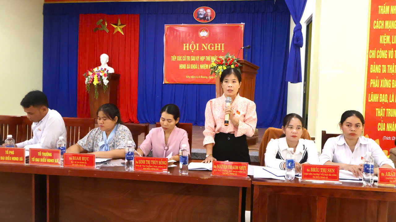Tại buổi tiếp xúc, đoàn đại biểu HĐND xã đã báo cáo với cử tri kết quả Kỳ họp thứ nhất, kỳ họp thứ hai HĐND xã khóa I, nhiệm kỳ; thông tin tình hình phát triển kinh tế - xã hội, quốc phòng - an ninh 9 tháng đầu năm, phương hướng nhiệm vụ trọng tâm 3 tháng cuối năm 2025 và một số nội dung quan trọng khác mà cử tri quan tâm. Cử tri thôn ARoong bày tỏ sự đồng tình, phấn khởi trước những kết quả xã Bến Hiên đã đạt được trong thời gian qua, đồng thời cử tri ý kiến, kiến nghị nhiều nội dung liên quan đến tiếp tục hỗ trợ nhà ở cho người có công, gia đình chính sách, hộ nghèo nhà xuống cấp; sửa chữa, nâng cấp đường nông thôn bị xuống cấp; làm đường dân sinh nhằm thuận tiện cho người dân phát triển sản xuất; nhiều hộ dân chưa có sổ đỏ nhà ở, đất vườn; làm bãi rác cho thôn nhằm đảm bảo vệ sinh môi trường; các chính sách hỗ trợ cho người cao tuổi, người có công, gia đình chính sách; khi hỗ trợ giống cây trồng con vật nuôi phải kiểm tra, rà soát các hộ dân và chọn giống cây trồng con vật nuôi đảm bảo....