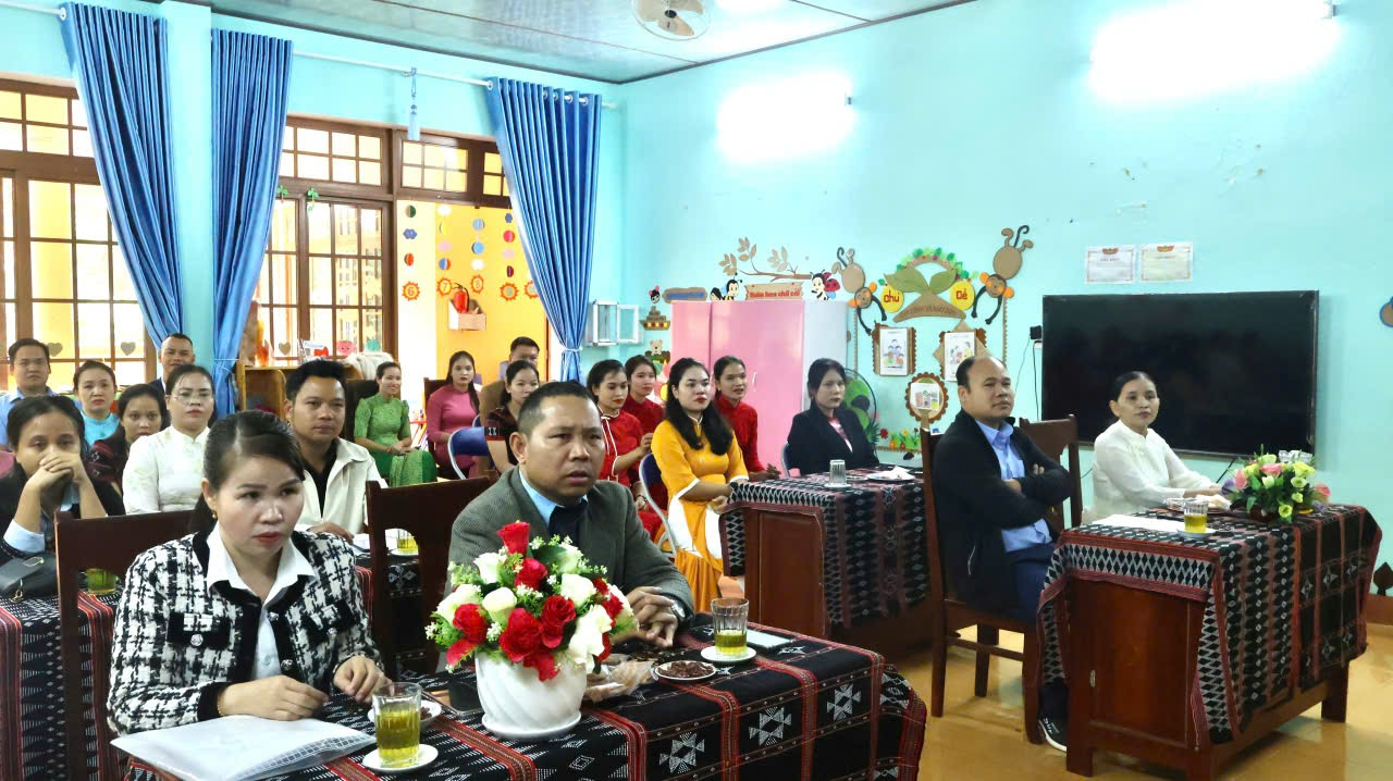 Phát biểu tại buổi lễ, đồng chí Bhiryu Long gửi lời chúc mừng tốt đẹp nhất đến đội ngũ cán bộ quản lý, giáo viên nhà trường; đồng thời ghi nhận những nỗ lực, đoàn kết và tinh thần trách nhiệm của tập thể nhà trường trong thời gian qua. Mặc dù còn gặp khó khăn về cơ sở vật chất và điều kiện giảng dạy, nhưng các cô giáo đã kiên trì, tâm huyết, luôn đặt học sinh làm trung tâm, đảm bảo môi trường giáo dục an toàn, thân thiện và hiệu quả. Đồng chí Chủ tịch UBND xã mong muốn nhà trường tiếp tục phát huy truyền thống tốt đẹp, đẩy mạnh đổi mới phương pháp giáo dục mầm non, chăm lo toàn diện cho trẻ; đồng thời tăng cường phối hợp với phụ huynh và chính quyền địa phương để nâng cao chất lượng nuôi dưỡng – giáo dục trẻ. Cô A Lăng Thị Ngát, Phó Bí thư chi bộ, Phó hiệu trưởng Trường Mầm non Hoa Sen cảm ơn sự quan tâm sâu sắc của cấp ủy, chính quyền xã; khẳng định đây là nguồn động viên to lớn để tập thể nhà trường tiếp tục phấn đấu, nâng cao chất lượng chuyên môn và xây dựng môi trường học đường lành mạnh, an toàn và thân thiện với trẻ nhỏ.