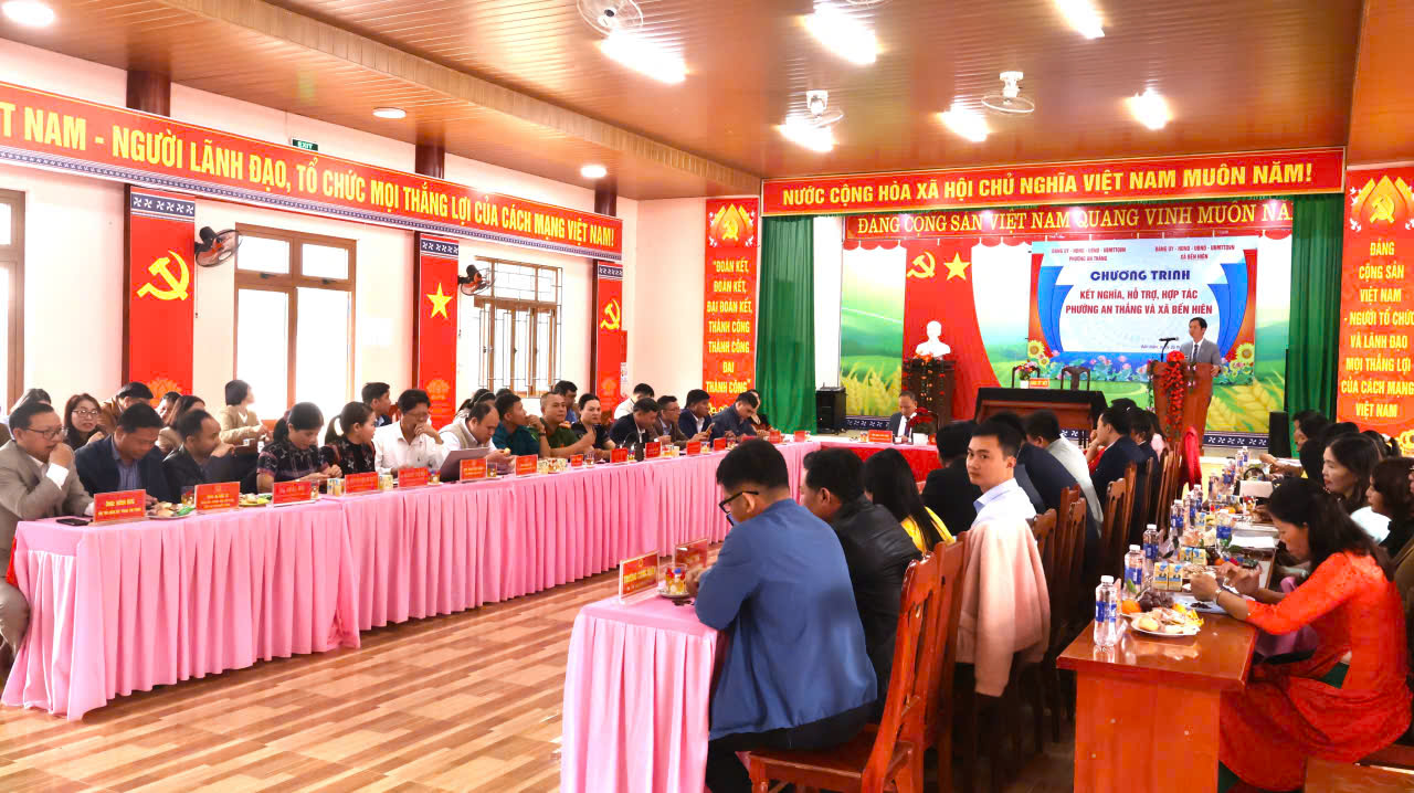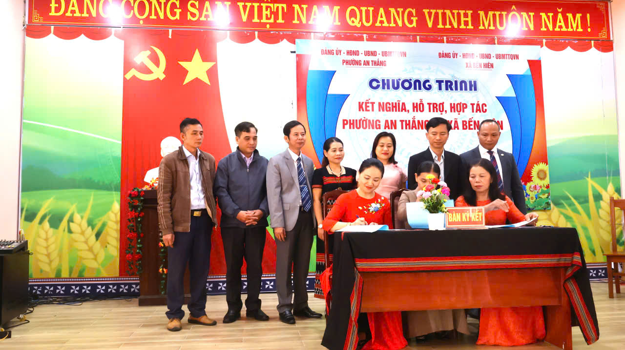 Trong không khí đoàn kết, thẳng thắn và cởi mở, hai địa phương đã trao đổi toàn diện về tình hình phát triển kinh tế - xã hội, công tác lãnh đạo, chỉ đạo cũng như những kết quả nổi bật đã đạt được trên các lĩnh vực thời gian qua. Đồng thời nhận định, mối quan hệ kết nghĩa giữa phường An Thắng và xã Bến Hiên sẽ góp phần quan trọng trong xây dựng hệ thống chính trị vững mạnh, phát triển kinh tế và nâng cao đời sống nhân dân. Hai địa phương chia sẻ kinh nghiệm về công tác tuyên truyền, dân vận, giám sát - phản biện xã hội, cải cách hành chính, chuyển đổi số, quản lý tài nguyên - môi trường, chăm sóc sức khỏe nhân dân, phòng chống dịch bệnh, phát huy thế mạnh đặc thù của từng địa phương, đặc biệt trong lĩnh vực phát triển du lịch cộng đồng, gìn giữ bản sắc văn hóa, quảng bá các sản phẩm truyền thống và OCOP. Một điểm nhấn trong chương trình là lễ ký kết chương trình kết nghĩa giữa các trường học của phường An Thắng và xã Bến Hiên. Hoạt động này tạo nền tảng quan trọng để nhà trường hai địa phương tăng cường trao đổi kinh nghiệm quản lý giáo dục, phối hợp tổ chức các hoạt động ngoại khóa, hỗ trợ học sinh có hoàn cảnh khó khăn và phát triển môi trường giáo dục lành mạnh, thân thiện.