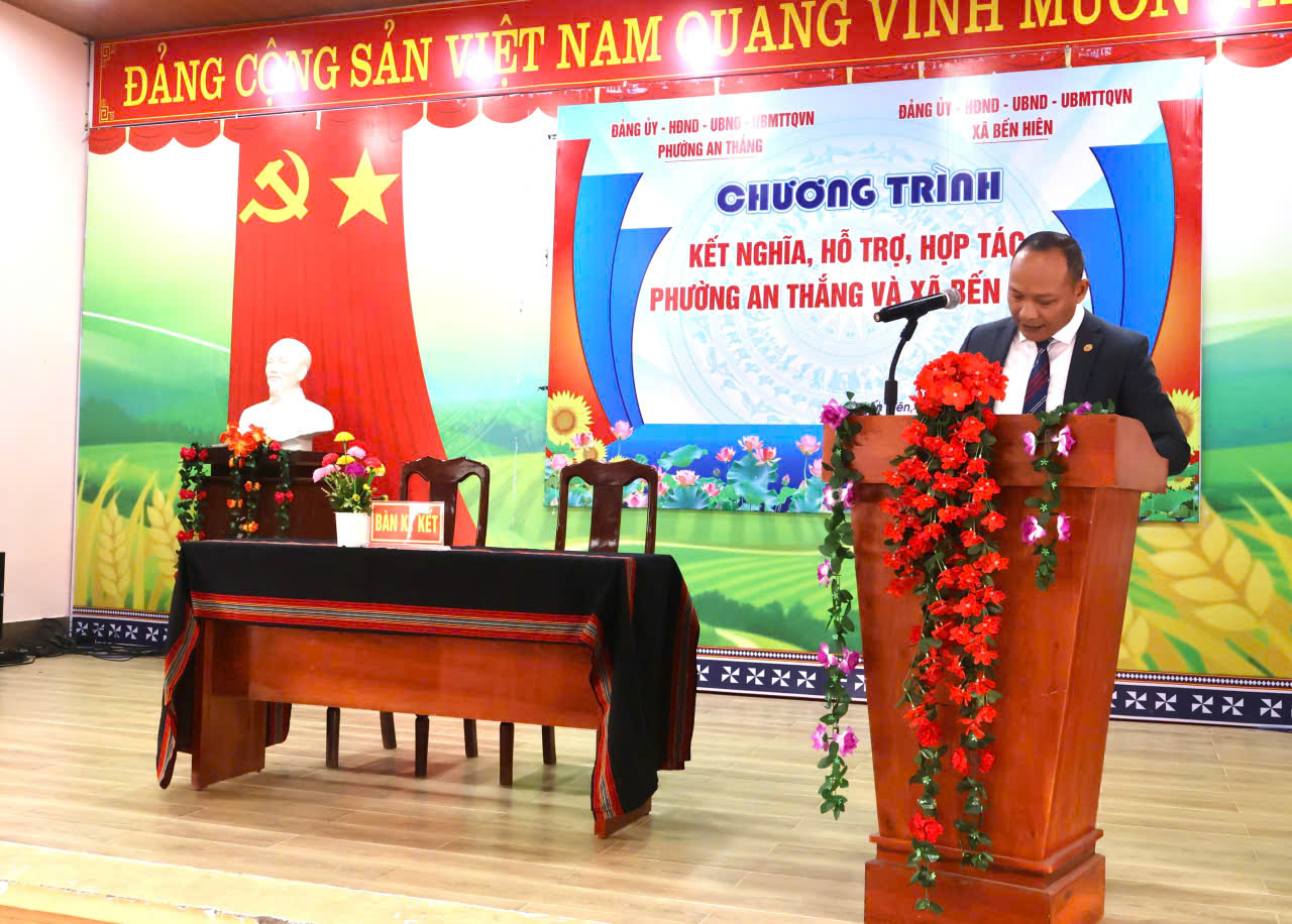 Ngày 26/11, tại nhà văn hóa A Xờ, xã Bến Hiên, phường An Thắng và xã Bến Hiên tổ chức chương trình kết nghĩa, hỗ trợ hợp tác phát triển kinh tế - xã hội giữa hai địa phương. Đồng chí Đinh Văn Hươm, Bí thư Đảng ủy, Chủ tịch HĐND xã Bến Hiên và đồng chí Nguyễn Xuân Hà, Bí thư Đảng ủy, Chủ tịch HĐND phường An Thắng đồng chủ trì. Cùng tham dự về phía Phường An Thắng có bà Đoàn Thị Minh Nguyệt, Phó Bí thư Thường trực Đảng ủy phường; ông Đặng Công Nhiên, Phó Bí thư, Chủ tịch UBND phường; các đồng chí Uỷ viên Ban Thường vụ Đảng ủy phường; UBND, UBMTTQ Việt Nam phường và các đoàn thể chính trị xã hội phường; lãnh đạo các cơ quan, ban ngành của phường. Cùng tham dự về phía xã Bến Hiên có bà Đinh Thị Thúy Hồng, Phó Bí thư Thường trực Đảng ủy xã; ông Bhiryu Long, Phó Bí thư Đảng ủy, Chủ tịch UBND xã; các đồng chí Uỷ viên Ban Thường vụ Đảng ủy xã; UBND, UBMTTQ Việt Nam xã và các đoàn thể chính trị xã hội xã; lãnh đạo các cơ quan, ban ngành xã.