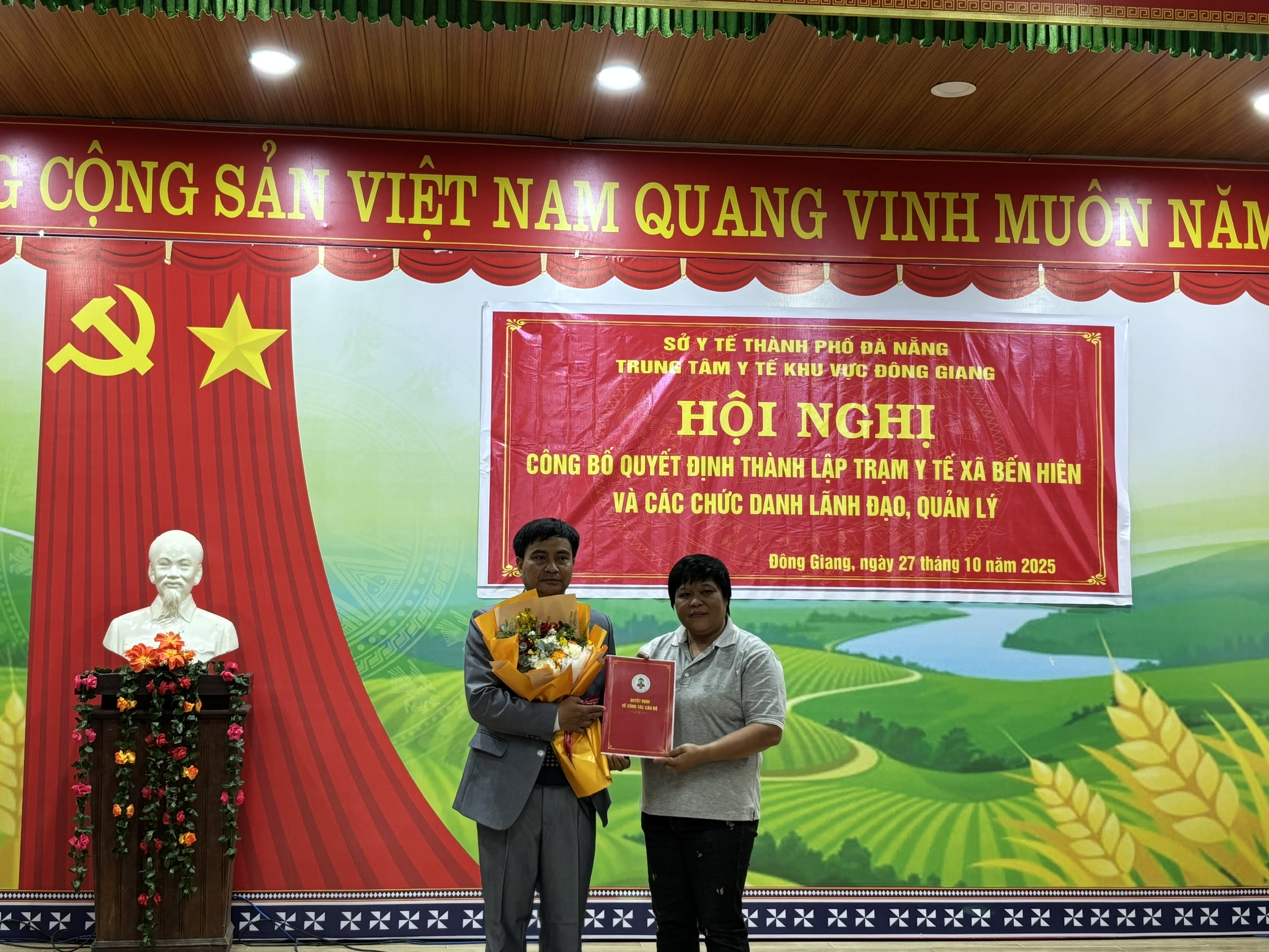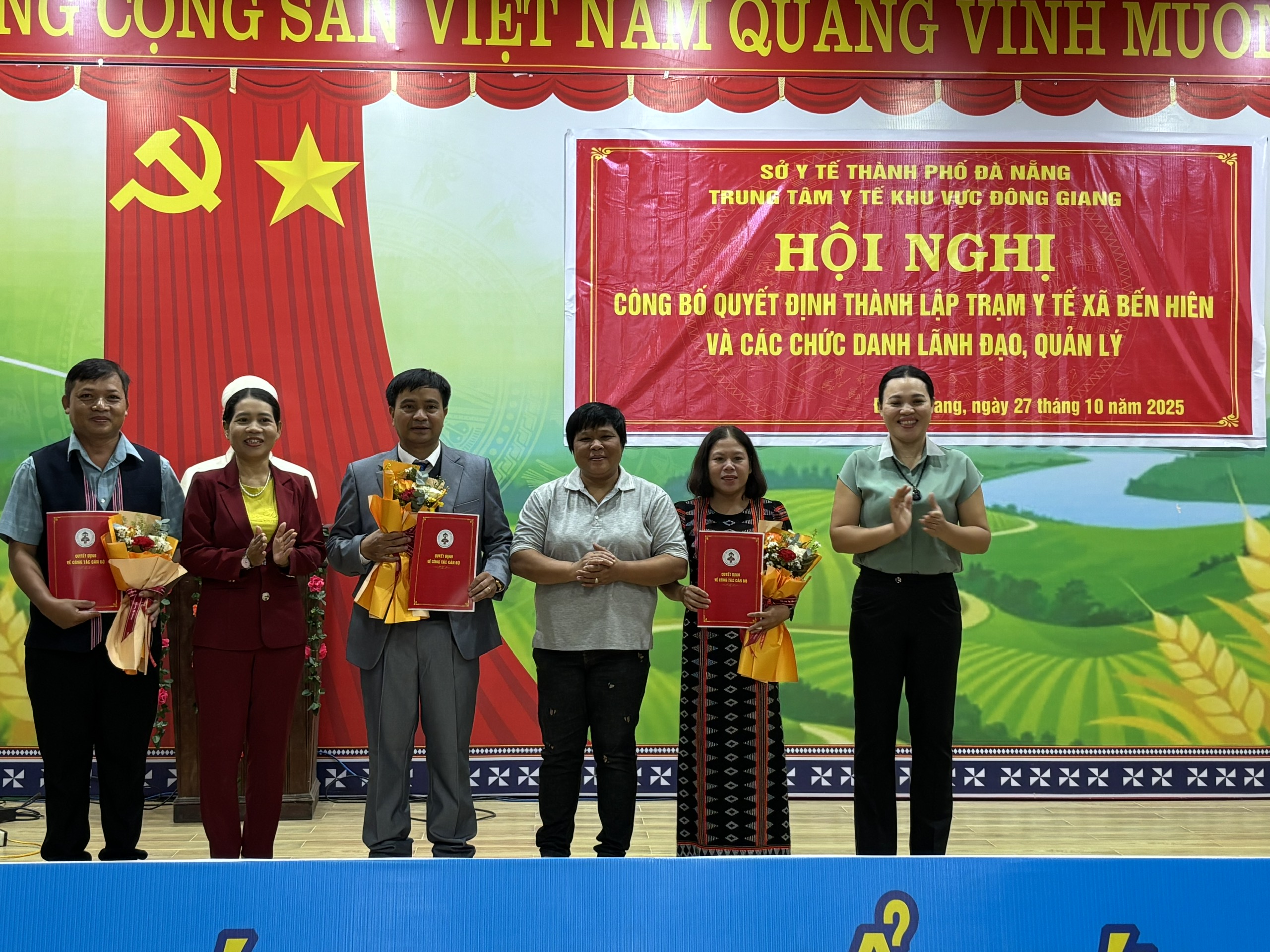 Tại hội nghị, đại diện Trung tâm y tế khu vực Đông Giang đã công bố Quyết định thành lập Trạm Y tế và Quyết định bổ nhiệm chức danh lãnh đạo quản lý Trạm Y tế xã Bến Hiên. Theo Quyết định, Trạm Y tế xã Bến Hiên, thuộc Trung tâm y tế khu vực Đông Giang trực thuộc Sở y tế thành phố Đà Nẵng trên cơ sở hợp nhất Trạm y tế Mà Cooih và Trạm y tế Kà Dăng (cũ), gồm 10 thành viên. Ông KLâu Nhất, được bổ nhiệm chức vụ Trưởng Trạm y tế xã Bến Hiên, thời hạn 5 năm kể từ ngày 01/10/2025; ông ALăng Tích và bà Trần Thị Bích, được bổ nhiệm chức vụ Phó Trưởng trạm y tế xã Bến Hiên, thời hạn 5 năm kể từ ngày 01/10/2025.