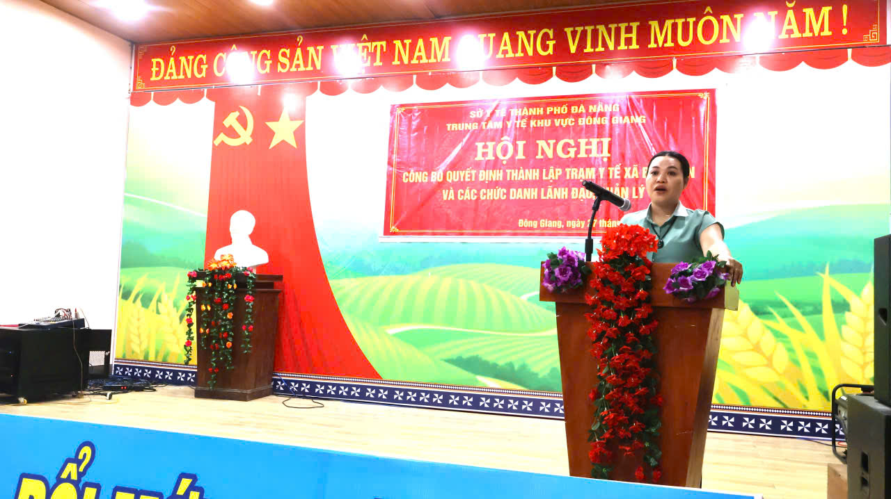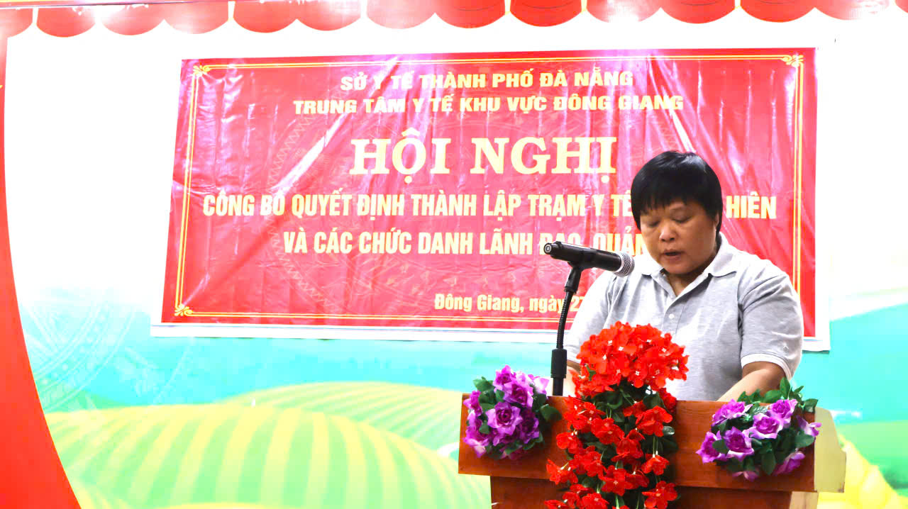 Phát biểu giao nhiệm vụ, đồng chí Lê Thị Quyết, Giám đốc Trung tâm y tế khu vực Đông Giang nhấn mạnh, việc thành lập Trạm Y tế xã Bến Hiên là bước đi quan trọng nhằm củng cố hệ thống y tế cơ sở, đáp ứng yêu cầu chăm sóc sức khỏe nhân dân trong tình hình mới. Trạm Y tế xã Bến Hiên, được kế thừa cơ sở vật chất và đội ngũ từ hai trạm y tế trước đây, tiếp tục đóng vai trò nòng cốt trong công tác y tế dự phòng, khám chữa bệnh và chăm sóc sức khỏe ban đầu cho nhân dân. Đồng chí đề nghị tập thể lãnh đạo Trạm Y tế nhanh chóng ổn định tổ chức, phát huy tinh thần đoàn kết, trách nhiệm và chuyên môn, phối hợp chặt chẽ với các ban, ngành, đoàn thể để triển khai hiệu quả các nhiệm vụ được giao.