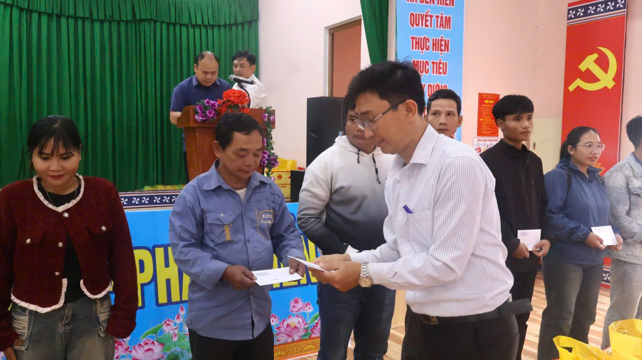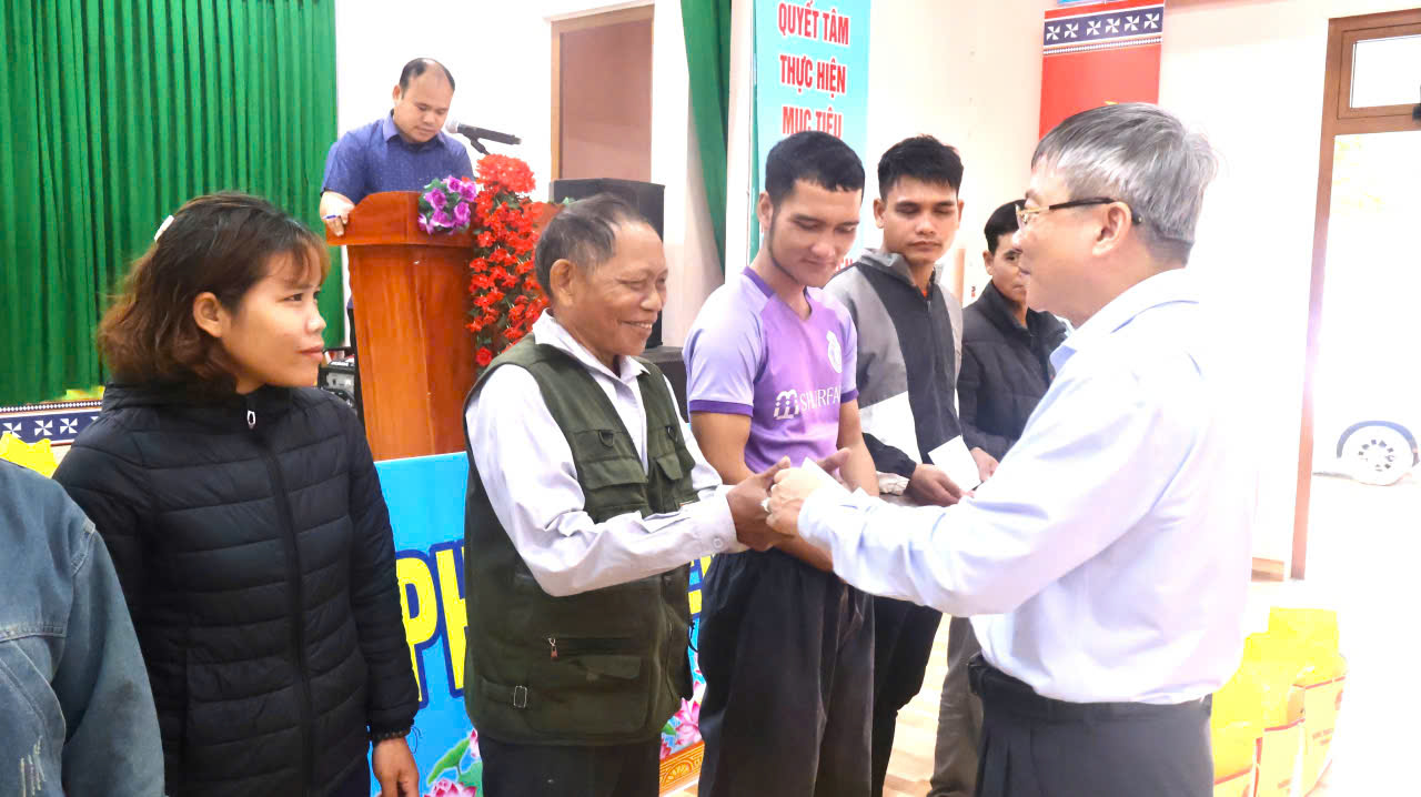 Đồng thời mong muốn bà con nhân dân xã tiếp tục phát huy tinh thần đoàn kết, gắn bó tương thân tương ái, hỗ trợ động viên nhau vượt qua những khó khăn thử thách. Dịp này, đoàn công tác trao 50 suất quà gồm tiền mặt và nhu yếu phẩm đến các hộ dân bị thiệt hại nặng trên địa bàn xã, mỗi suất quà trị giá 1 triệu đồng.