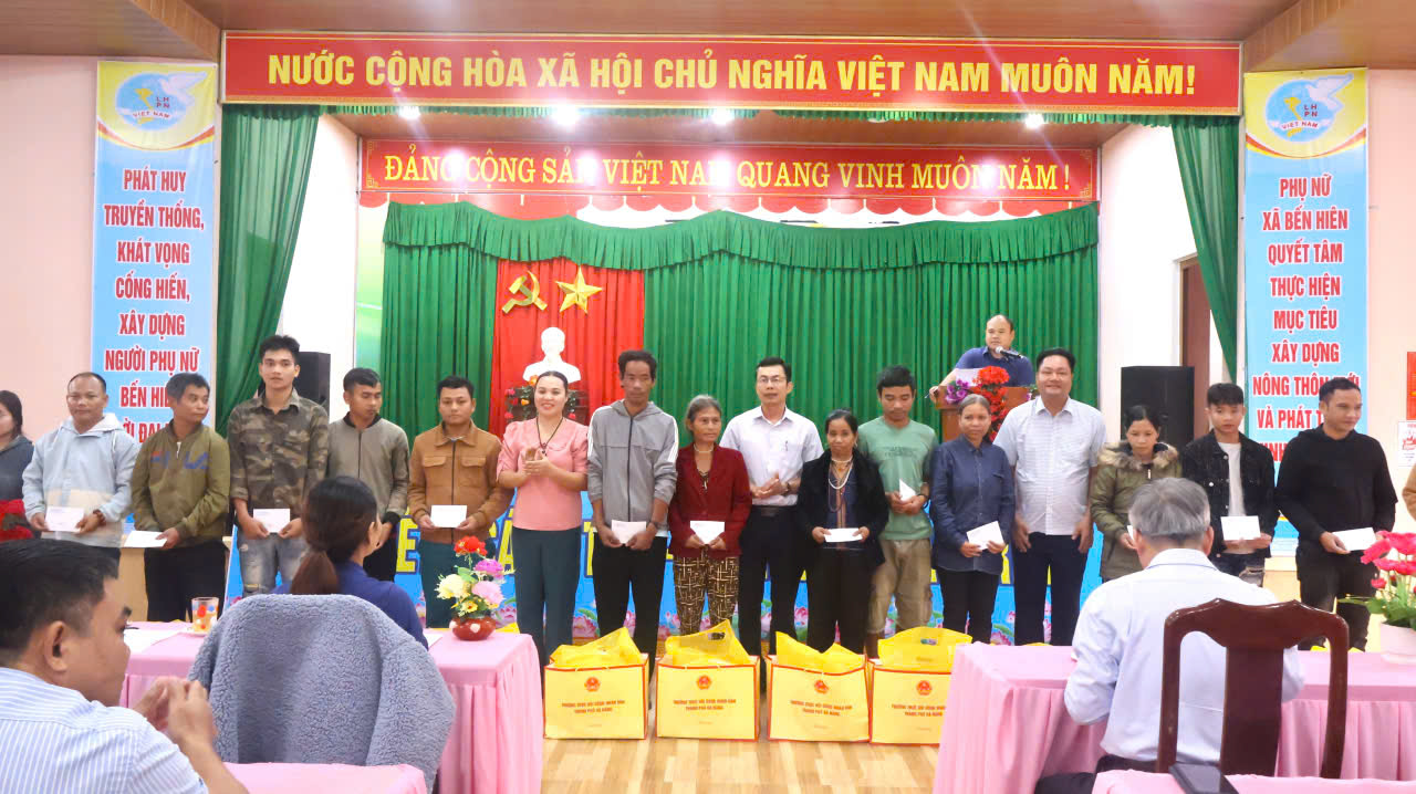 Đoàn công tác thành phố Đà Nẵng và lãnh đạo xã tặng quà cho người dân xã Bến Hiên. Ảnh: ATing Hàn