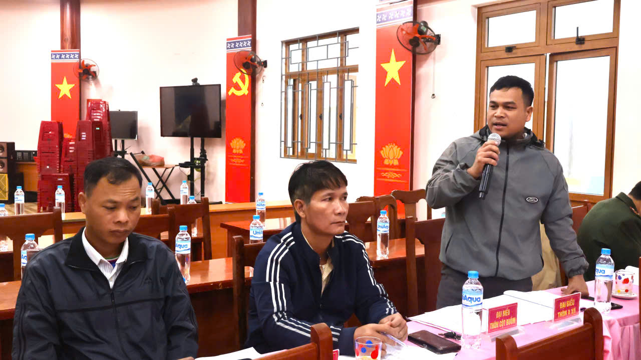 Đồng chí Bhiryu Long, Phó bí thư, Chủ tịch UBND xã Bến Hiên phát biểu tại Hội nghị. Ảnh: ATing Hàn
