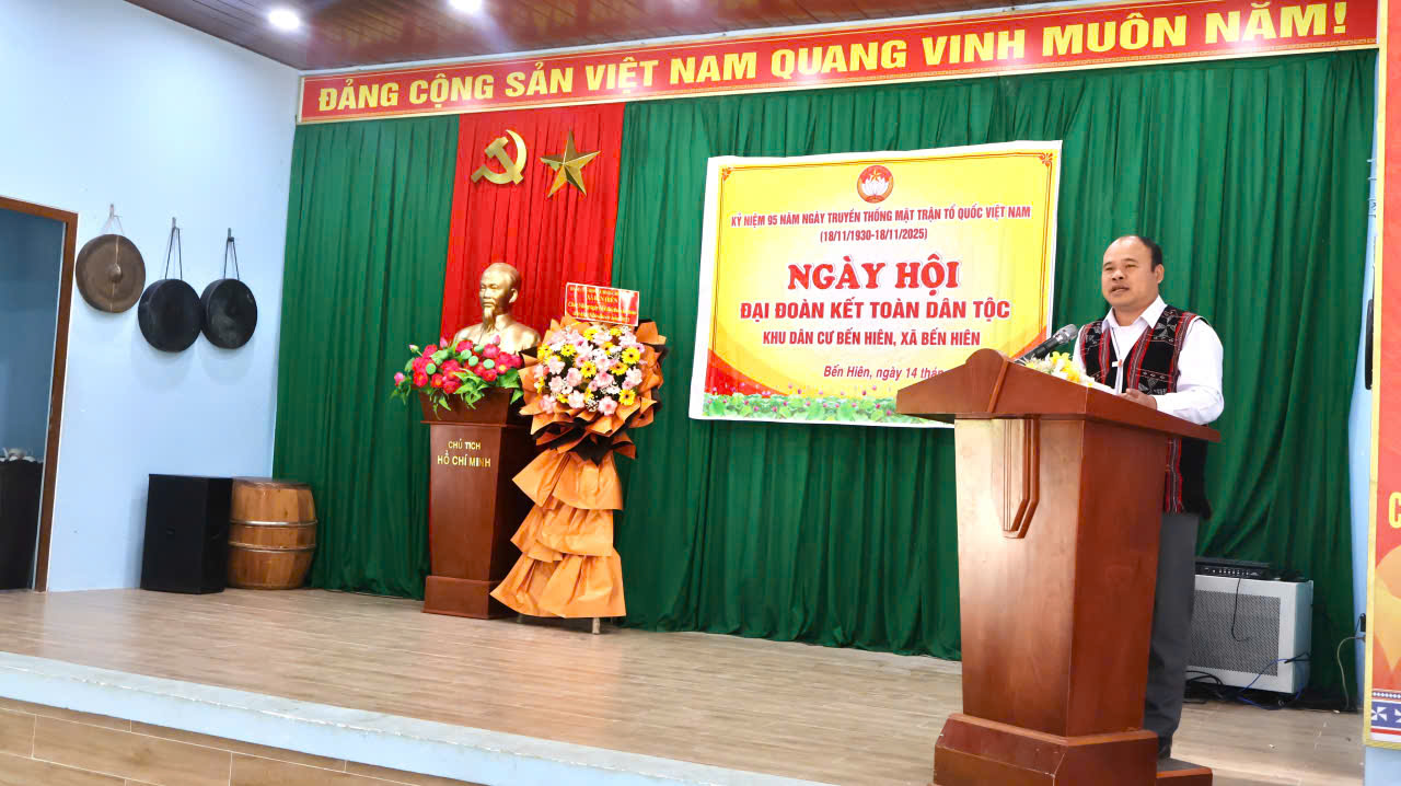 Ngày 14/11, khu dân cư Bến Hiên, xã Bến Hiên long trọng tổ chức Ngày hội Đại đoàn kết toàn dân tộc năm 2025, nhân kỷ niệm 95 năm Ngày truyền thống Mặt trận Tổ quốc Việt Nam (18/11/1930 – 18/11/2025). Tại ngày hội, các đại biểu đã cùng ôn lại truyền thống vẻ vang 95 năm xây dựng và trưởng thành của Mặt trận Tổ quốc Việt Nam; đánh giá những kết quả nổi bật trong phong trào thi đua của khu dân cư; đồng thời biểu dương, khen thưởng các tập thể và cá nhân tiêu biểu. Khu dân cư Bến Hiên hiện có 297 hộ với hơn 1.100 nhân khẩu.