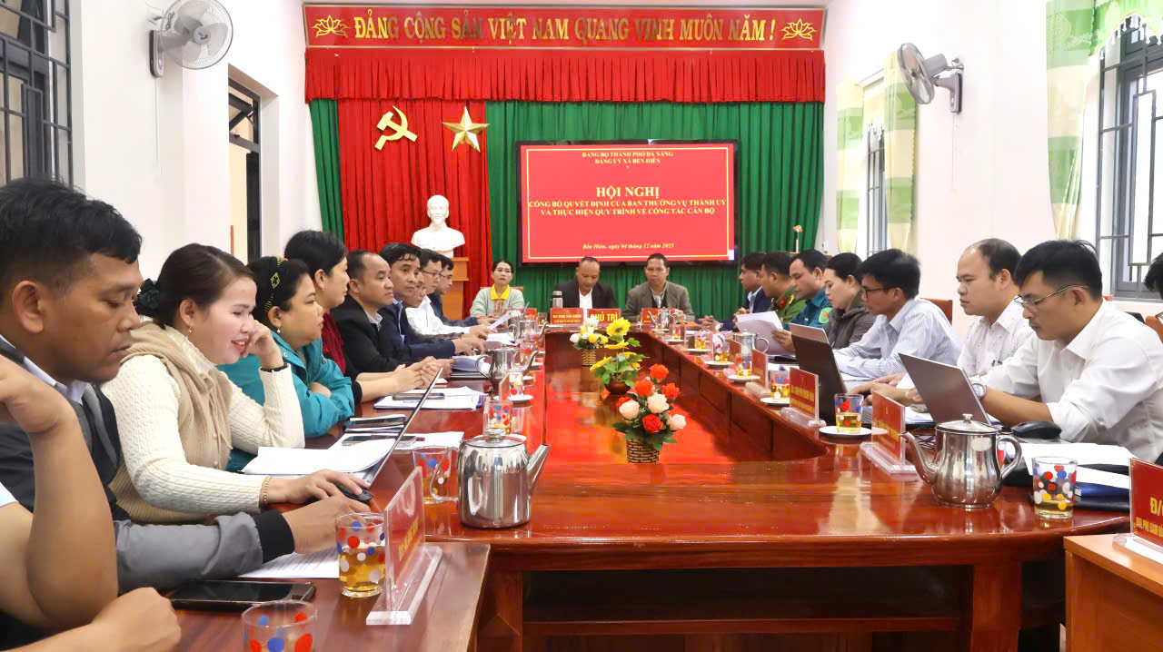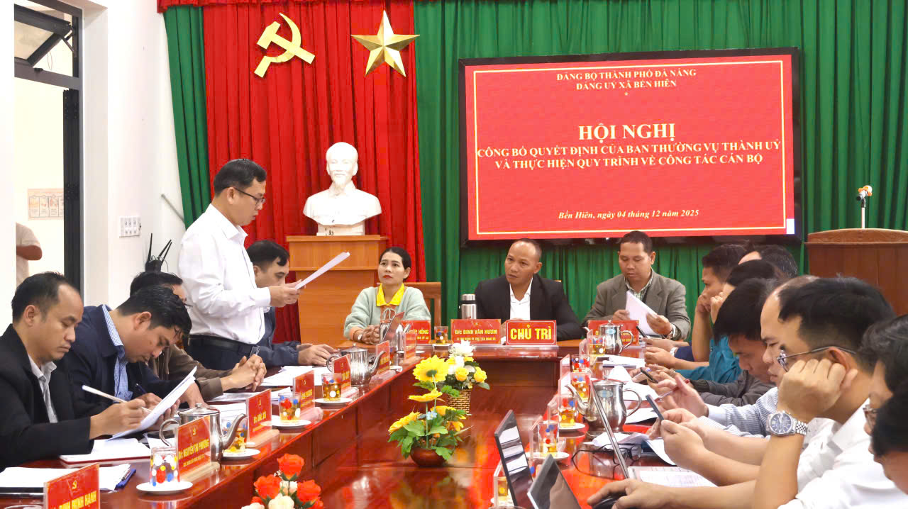 Chiều ngày 04/12/2025, tại phòng họp Ban Chấp hành Đảng bộ xã Bến Hiên, Đảng ủy xã đã long trọng tổ chức Hội nghị công bố Quyết định của Ban Thường vụ Thành uỷ và thực hiện quy trình về công tác cán bộ. Đồng chủ trì hội nghị gồm các đồng chí Đinh Văn Hươm - Bí thư Đảng ủy - Chủ tịch HĐND xã; đồng chí Đinh Thị Thuý Hồng, Phó Bí thư Thường trực Đảng uỷ và đồng chí Bhiryu Long, Phó Bí thư Đảng uỷ, Chủ tịch UBND xã.