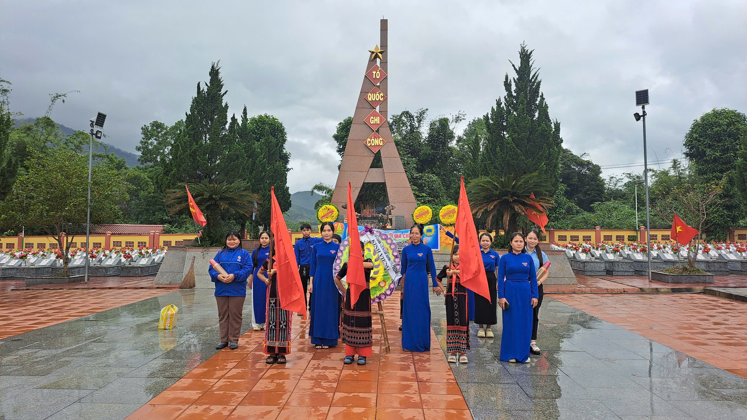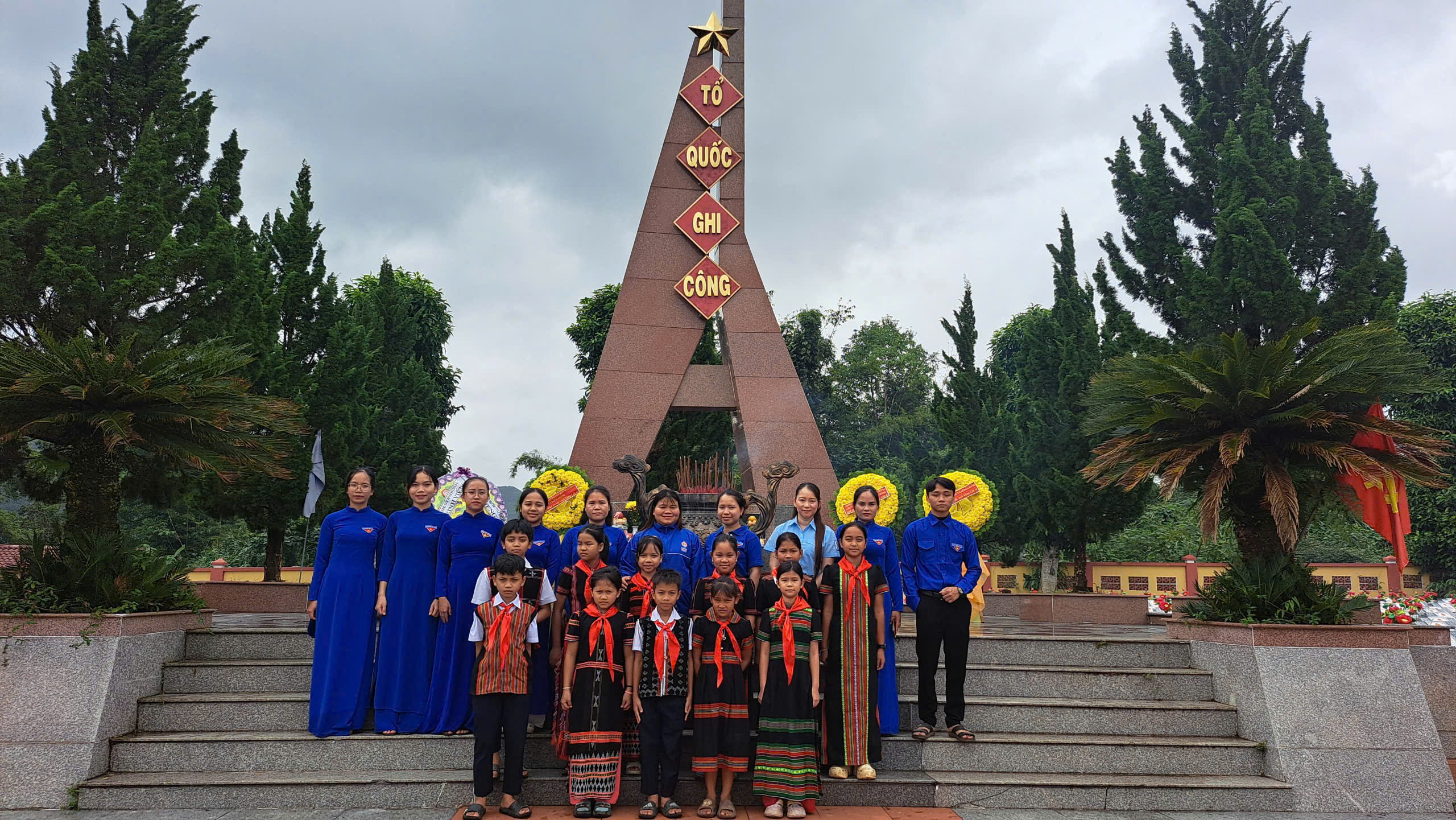 Tiếp nối là hành trình về nguồn đầy xúc động, nơi các thầy cô giáo và các em đội viên thành kính viếng hương tại Nghĩa trang Liệt sĩ, hát vang Quốc ca tại địa chỉ đỏ. Trong không gian trang nghiêm, từng nén hương được thắp lên không chỉ để tưởng nhớ những anh hùng liệt sĩ đã ngã xuống, mà còn là lời hứa thầm lặng của thế hệ hôm nay: sẽ sống xứng đáng với những hy sinh cao cả của cha anh đi trước.