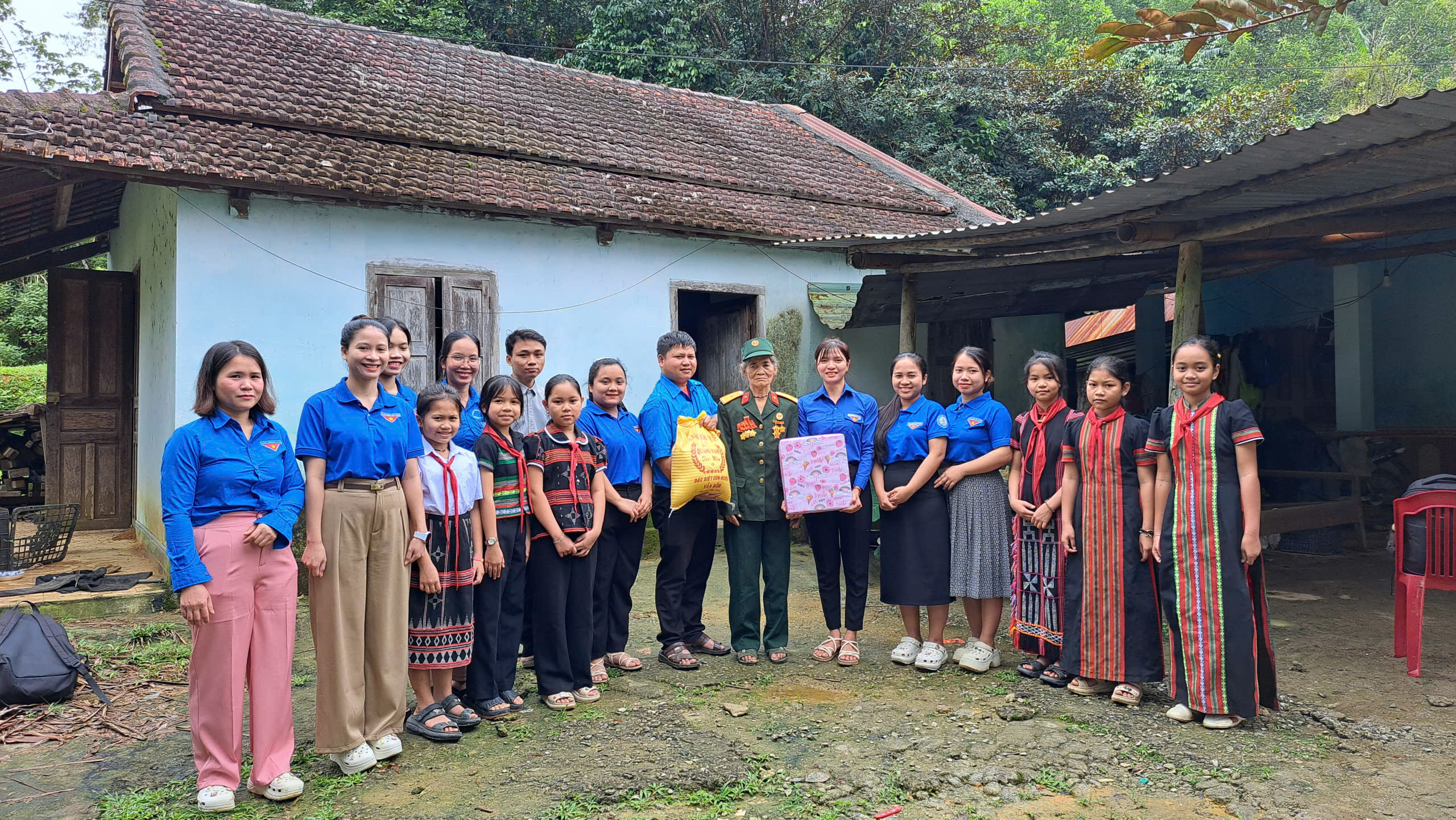 Không dừng lại ở đó, chuỗi hoạt động còn lan tỏa giá trị nhân văn sâu sắc thông qua việc thăm hỏi, động viên, quét dọn và trao quà cho gia đình cụ bà A Ting Tưng và cụ A Rất Thị Lư tại thôn A Xờ. Những việc làm tuy nhỏ bé nhưng chứa đựng nghĩa tình lớn lao, thể hiện đạo lý “Uống nước nhớ nguồn”, “Đền ơn đáp nghĩa” – truyền thống quý báu của dân tộc Việt Nam, được gieo mầm và nuôi dưỡng trong từng hành động cụ thể của các em học sinh.