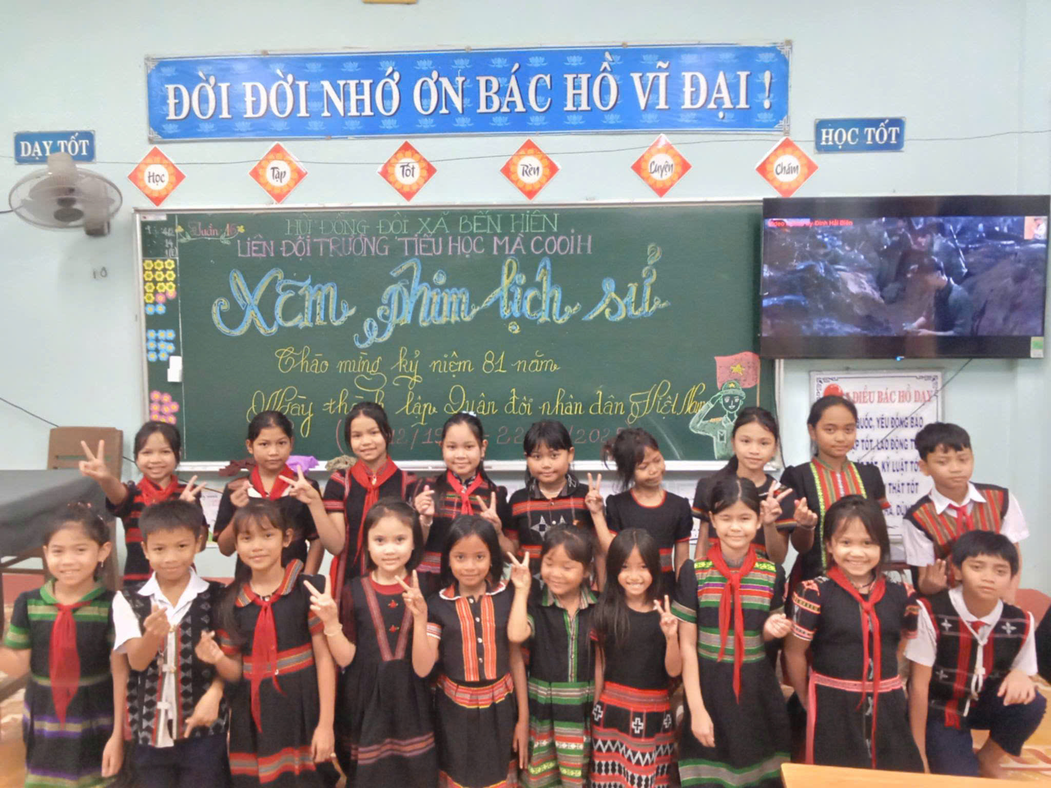 Hòa chung không khí thiêng liêng ấy, Liên đội Trường Tiểu học Mà Cooih phối hợp cùng Hội đồng Đội xã Bến Hiên và Chi đoàn Trường Tiểu học Mà Cooih đã tổ chức chuỗi hoạt động ý nghĩa, thiết thực, giàu giá trị giáo dục truyền thống, góp phần hun đúc lòng yêu nước, bồi đắp lý tưởng sống đẹp cho các em đội viên, thiếu nhi.