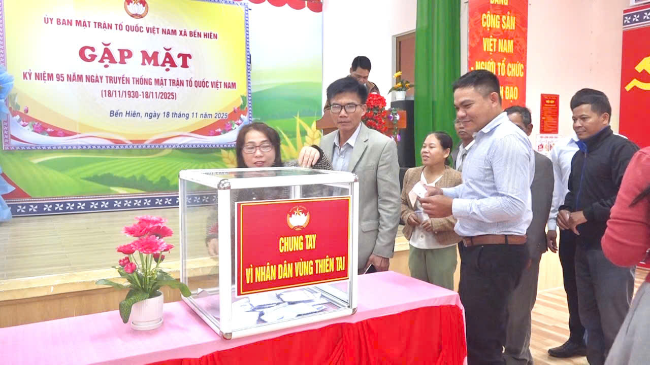 Tại buổi gặp mặt, Ủy ban MTTQ Việt Nam xã phát động ủng hộ kinh phí hỗ trợ nhân dân khắc phục thiên tai gây ra, thu được gần 16 triệu đồng. Dịp này, Uỷ ban MTTQ Việt Nam xã tặng giấy khen Ban công tác Mặt trận khu dân cư A Xờ đã có thành tích xuất sắc trong thực hiện các cuộc vận động và phong trào do Uỷ ban MTTQ Việt Nam các cấp phát động năm 2025 và trao 12 suất quà cho các vị nguyên cán bộ lãnh đạo Mặt trận xã đã nghỉ hưu qua các thời kỳ.